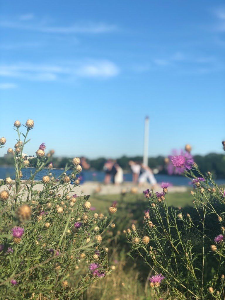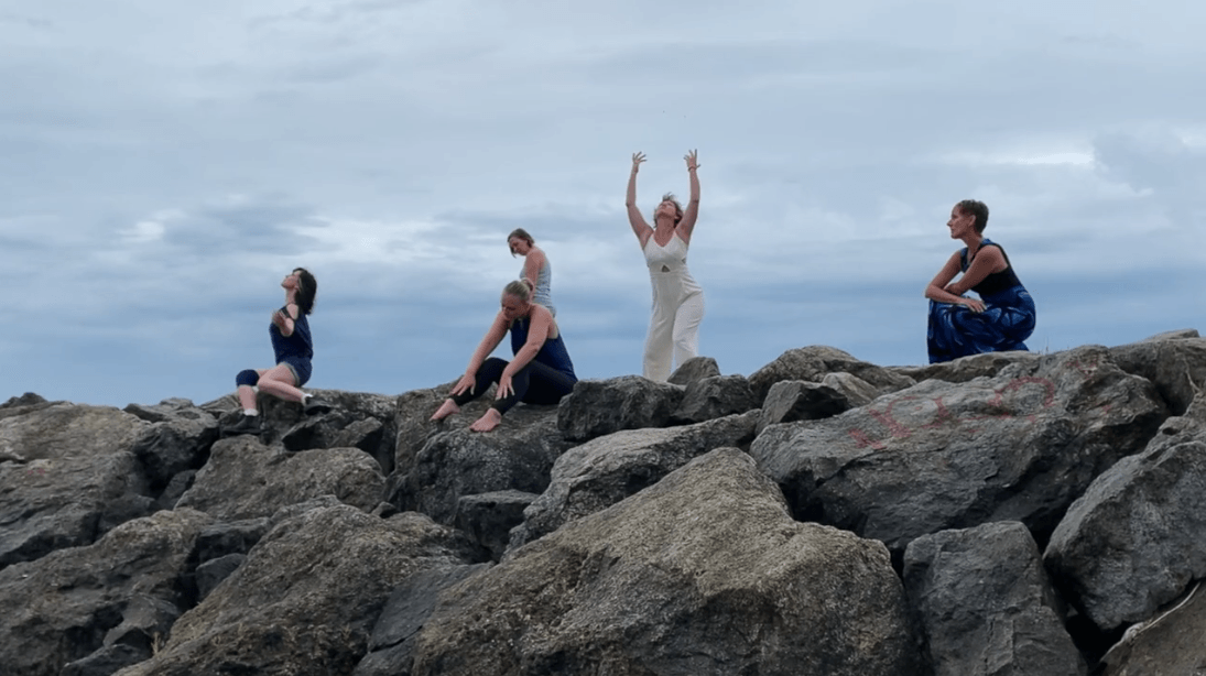 The two locations I chose on the water were very important for me to create in, especially during this pandemic. Living close to the water, it has become a quiet and peaceful solace during this time of quarantine. More and more people are coming to the water, than I have ever seen in summers past, needing to be with people in small groups, in need of the sunshine, and listening to the lapping of the water against the shoreline. It seemed fitting to explore the work within this type of environment as it resonated with so many during a hot summer of partial isolation. We needed to be particularly mindful as it was that this was a common area for morning joggers, walkers, and cyclists to meet their endpoint at the pier, social distancing ourselves from everyone was at the forefront and by noon the sun would be blazing and the dancers completely dehydrated. We were extremely efficient and finished by 9am. Our second location proved to be a different experience. There weren't as many people as it was an overcast, and rainy morning and the contrast of weather was a blessing to our bodies and to the making of the video. The rocks and sand on the beach were a little more difficult to navigate in ballet shoes, challenging our balance, but as the sun eventually snuck out from behind the clouds, we were like children playing in the rocks and skipping them into the water, discovering the play behind the dance. In places, these forms of play found their own way into the video in an impromptu type of way. I'm always grateful for those serendipitous moments that you can never plan for until the time comes to marry the vision with the artist.