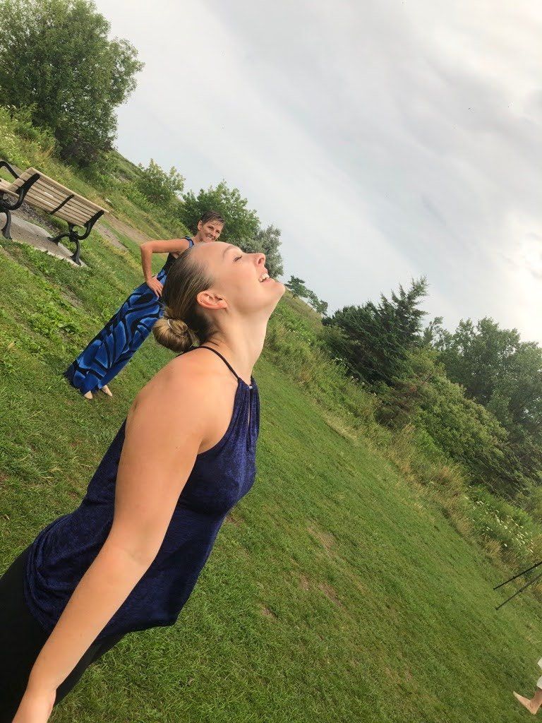 The duets, and trios that took place all happened on site as we had no ability to rehearse together prior to the shoot days. This adventure became a beautiful serendipitous happenstance. My favourite moments happened in watching Alisa dance behind Claire, holding the space for her as I watched it behind the lens, the wonderful duet of choreographer and dancer (Lisa and Alisa) as they cannoned their phrase so beautifully together - and the magic that unfolded in post when I edited the duet and Lisa's quiet dissolve into absence made for a beautiful stillness as Alisa was left in solo. The duet of mother and daughter (Lisa and Emily) that started as two separate solos, took on new meaning as the two danced side by side, subtly in quiet communication with each other...and of course the group moments of improv came together magically as we felt our ways through the moment. We were even blessed by Mother Nature as she enchanted us with her paint brush... painting the skies with a bright blue crimson and yellow sun on Day 1, followed by a quiet grey and sombre sky with rain that fell at the exact precise moment during the duet between Mom and Daughter. It was as though she knew we were creating in the moment, and blessed us with a gaggle of Canadian geese that flew by in their own choreographic dance space as we watched in awe. These moments as they were happening were all mysterious and wonderfully powerful, and continued to be so as I edited the footage later to find more moments to be thankful for that I could have only caught when I was out of the frame, and watching it as a viewer rather than a participant.