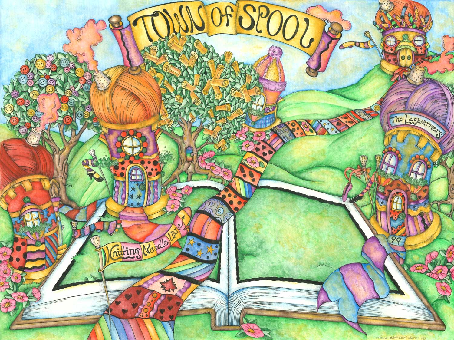 The Legwarmers takes place in the Town of Spool where sisters Ballermina and Jazzermina Legwarmer live at 99 Knitting Needle Lane, right beside their cousins Tappermina, Modernmina and Folklormino Legwarmer. Gazing over rooftops made of yarn as the town weaves its way through cobblestone streets, the town’s historical landmarks described below.
